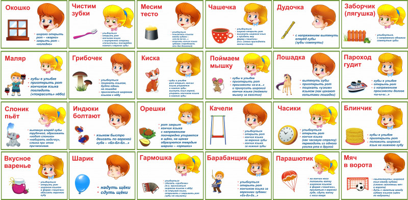 Гимнастика для рук и ног – дело привычное и знакомое. Понятно ведь, для чего мы тренируем мышцы чтобы они стали ловкими, сильными, подвижными. А вот зачем язык тренировать, ведь он и так «без костей»? оказывается язык – главная мышца органов речи. И для него, как и для всякой мышцы, гимнастика просто необходима. Ведь язык должен быть достаточно хорошо развит, чтобы выполнять тонкие целенаправленные движения, именуемые звукопроизношением. Недостатки произношения отягощают эмоционально-психическое состояние ребенка, мешают ему развиваться и общаться со сверстниками. Чтобы эта проблема не возникала у ребенка в дальнейшем, стоит начать заниматься артикуляционной гимнастикой как можно раньше. Артикуляционную гимнастику необходимо делать перед зеркалом. Ребенок должен видеть, что язык делает. Не огорчайтесь, если некоторые упражнения не будут получаться с первого раза. Попробуйте повторить их вместе с ребенком. Будьте терпеливы, ласковы и спокойны, и все получиться. Занимайтесь с ребенком ежедневно по 5-7 минут. Даем вам пример артикуляционной гимнастики.